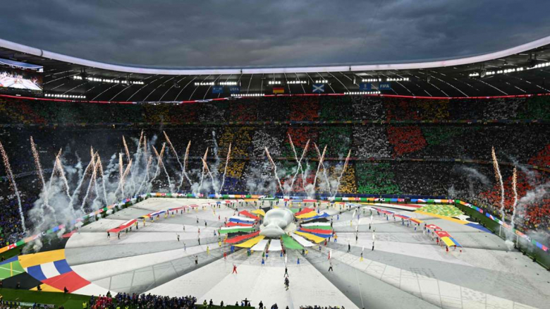 Euro 2024 opening ceremony involves lots of colour, music turned up way too loud, pyrotechnics turned down to 1 and a giant inflatable trophy.
