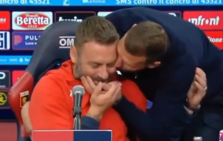 Даниеле Де Роси и Един Џеко беа соиграчи во Рома во периодот 2015-2019. Сега Италијанецот е тазе тренер на Џенова, а Босанецот на 39 години игра за Фиорентина. Џенова - Фиорентина конечни 2:2. Един му посака успешна тренерска работа во новиот клуб со куп бакнежи.