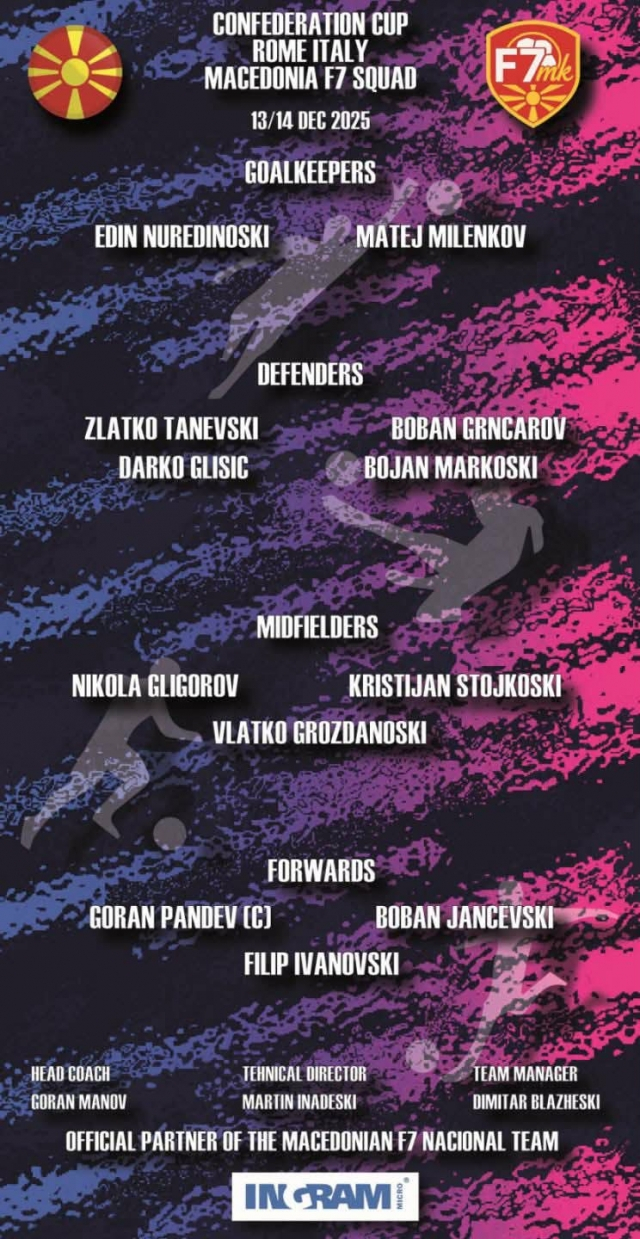 На таканаречениот Куп на Конфедерации во Фудбал 7 ќе игра и Македонија Ф7 која добила покана од претседателот на ФИФ7 Европа, Калчо7 и Калчо8 Фабрицио Лофреда.