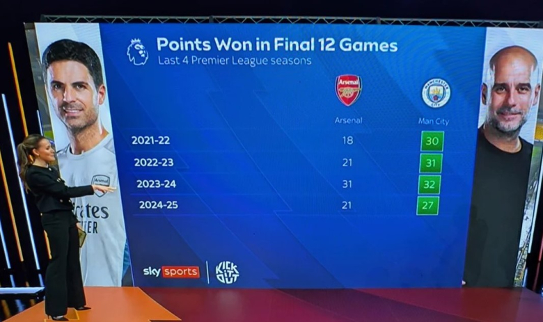 По колку бода освојуваат Арсенал и Манчестер Сити во последните 12 кола?