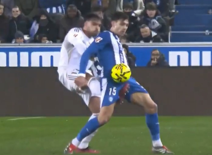 Offside Фудбал Погрешна топка другар Реал Мадрид го доби Алавес на гости со 1:2. Напаѓачот на домаќините, Лукас Боје го имаше она напријатно искуство со Раул Асенсио, кое секој се обидува да го избегне, посебно кога ќе застане да држи жив ѕид. SharePostСподели SharePostСподели Тагови: раул асенсио реал мадрид алавес објавено: 15 декември 2025 - 10:10