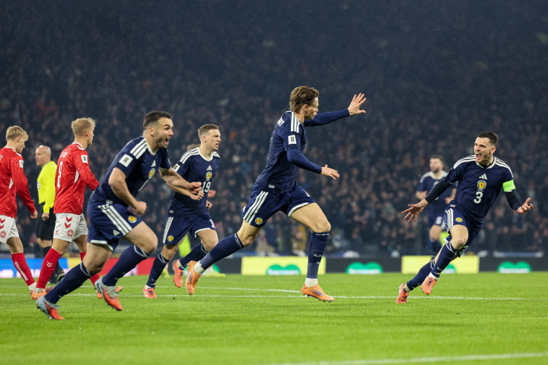 Во спектакуларен натпревар одигран во Глазгов, Шкотланѓаните водеа четири пати, Данците се враќаа два пати и тоа еднаш со играч помалку, минути ги делеа од сонуваното Светско првенство но на крај Шкотска е цела во екстаза!