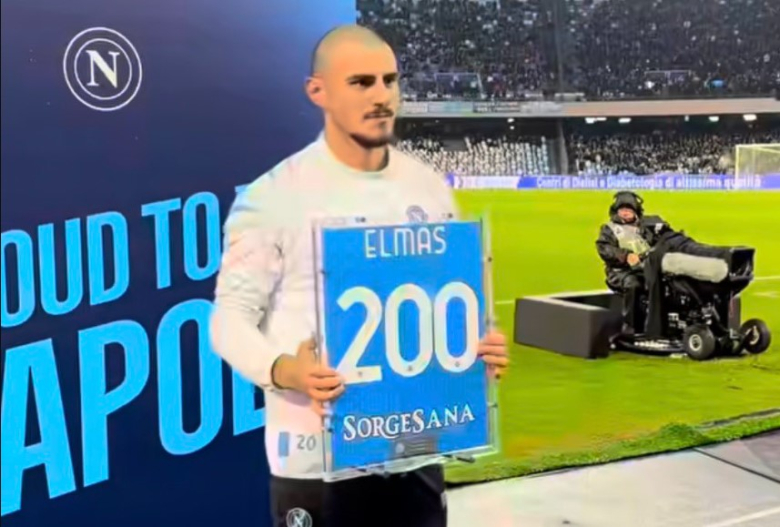 🇲🇰Eljif Elmas celebrates making 200 appearances for #Napoli. 💙 pic.twitter.com/y6SgDHfp2f