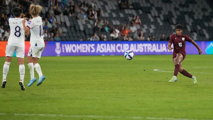 Offside Фудбал Врвен гол во женски фудбал на Куп на Азија Во последното коло од групната фаза на женскиот Азиски Куп, Кинески Тајпеј со 3-1 ја совлада Индија но голот што го постигнала Маниша Калјан за Индијките бил мајсторство. SharePostСподели Goal of the tournament. Indian women Football team . 💪 pic.twitter.com/riB0HA6JdH — Hunटरर ♂ (@nickhunterr) March 10, 2026 SharePostСподели објавено: 11 март 2026 - 15:41