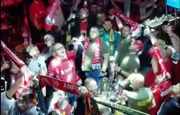 Offside Навивачи „You'll Never Walk Alone" во македонско издание Официјалниот клуб на навивачи на Ливерпул во Македонија „Macedonian Reds“, моќно, сплотено, како хор, ја згрмија „химната“ во наш локал. SharePostСподели SharePostСподели Тагови: ливерпул објавено: 6 април 2026 - 08:46