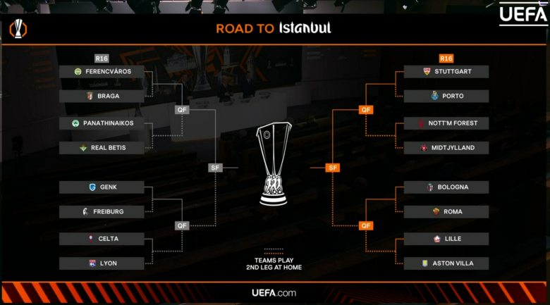Првите дуели од осминафинале се закажани за 10-ти и 11-ти март со реванши на 17-ти и 18-ти март. Четвртфиналето е предвидено за 8/9 март со возвратни натпревари на 15-ти и 16-ти април. Полуфинални дуели во Лига Европа ќе се играат на 29-ти и 30-ти април со реванши на 6-ти и 7-ми мај.