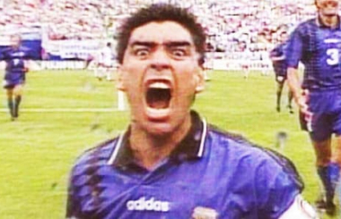 Пред 25 години на Мундијалот во САД, Аргентина во групна фаза ја совлада Грција со 4:0. Марадона даде гол по една страшно брза игра на прва, а потоа со вампирска фаца тргна накај камерата. По мечот го тестираа и открија дека зема дрога. Диего беше суспендиран од светското, а Аргентина без него загуби во осминафинале од Романија.
