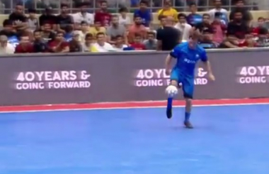 Манчестер Јунајтед и Баерн Минхен организираа фудбалски спектакл по повод 20 години од јубилејното историско финале во ЛШ, ама со актерите од тогаш. На Јап Стам е полошо да му влезеш во дуел еден на еден сега на 46 години отколку тогаш. За 3 секунди, тројца ги легна на нозе.