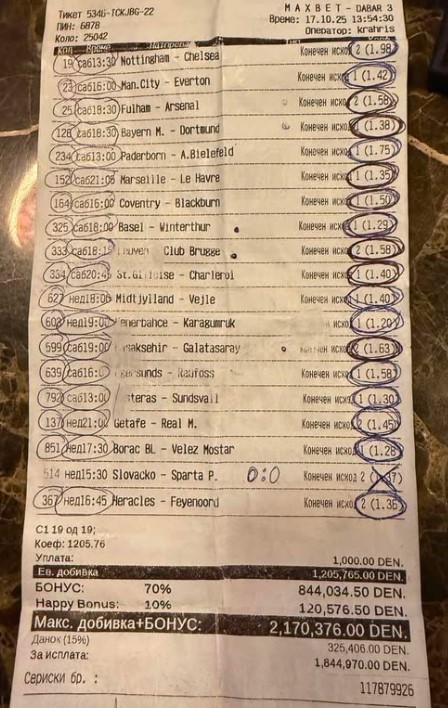 Offside Кец у два Малер на колото за 1,8 милиони денари SharePostСподели Филип Ако имате добитен тикет или ако една ве зафркнала, пратете ни го на tipster@trendolend.mk. SharePostСподели Тагови: малер на колото објавено: 21 октомври 2025 - 12:15