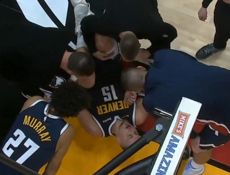 Несреќниот момент се случи откако го згазна соиграчот Спенсер Џонс. Јокиќ падна веднаш на земја, почна да се превиткува од болка, а потоа му помогнаа да стане и да замине во соблекувална.