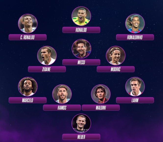- Богатото портфолио и фудбалската интелигенција која ја поседуваше, му даваат целосен легитимитет да избере топ 11 на сите времиња по свое. Иако се фокусирал на поновите времиња, без да се навраќа на минатото и покојните легенди како Марадона, Кројф и Бекенбауер.