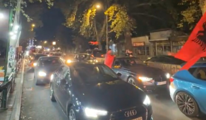 Победата на Албанија над Србија се славеше во Тетово, Куманово, Скопје (ВИДЕО)