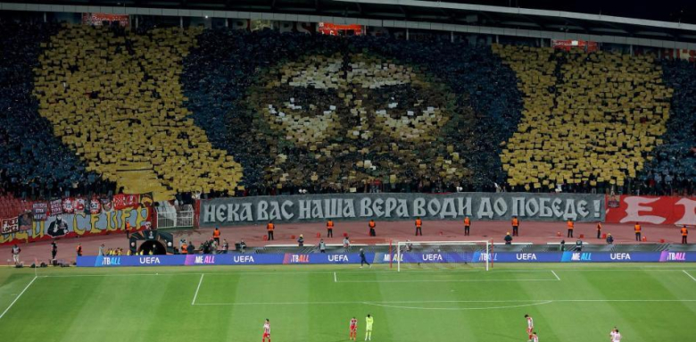 - Навивачите на црвено-белите на почеток на натпреварот истакнаа голема кореогррафија со ликот на светиот Симеон кој е светител кого навивачите го имаат за слава и порака со натпис „Нека нашата вера ве води до победа“.
