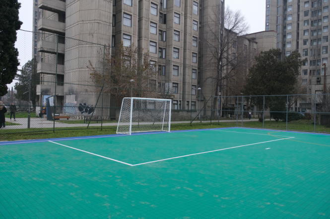 - Овие модерни терени за фудбал и кошарка имаат полипропиленски под, изведени се според современи стандарди.