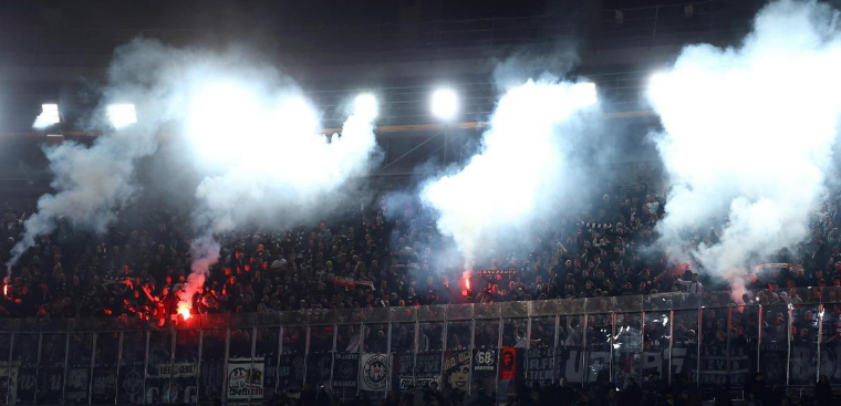 Eintracht Frankfurt fans are throwing flares into the section where the Barça supporters are located 😐