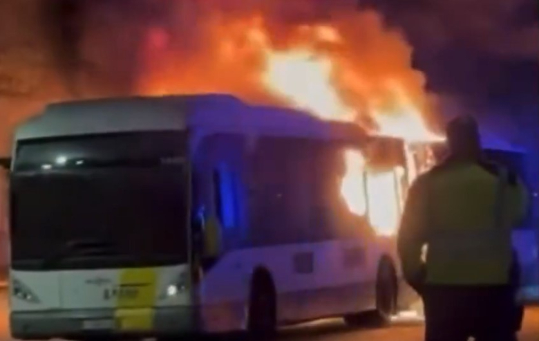 05.11.2025, Club Brugge🇧🇪 - Barcelona🇪🇸, Barcelona fans with flares in bus, then the bus burned down., click here for more: https://t.co/t8E4vD4pJT