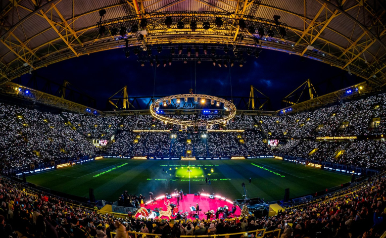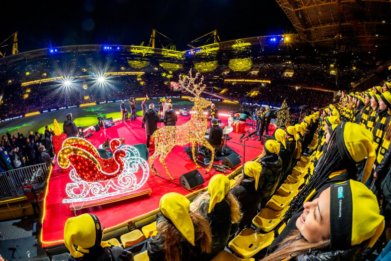 Во море новогодишни сијалички и жолто-црни бои на Борусија Дортмунд, 73.500 навивачи на славниот германски клуб ја продолжиле убавата традиција да се пејат Божиќни песни и да се собираат средства за хуманитарни акции на фондацијата на Борусија.