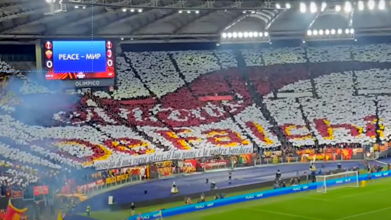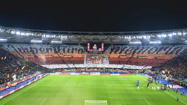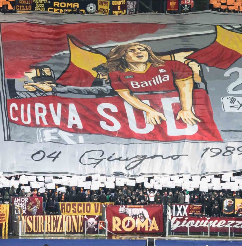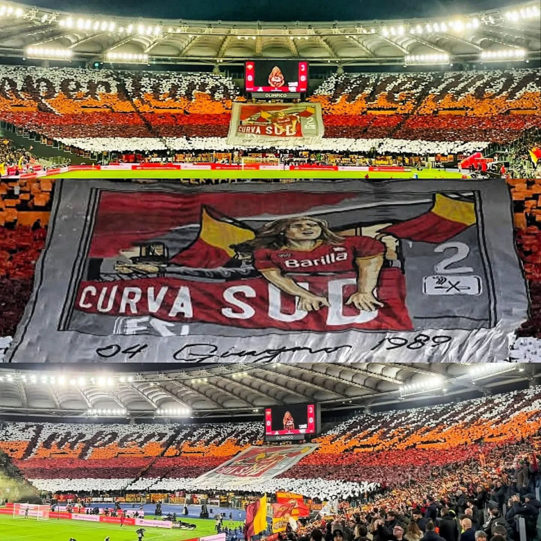 La spettacolare coreografia della #CurvaSud per Antonio De Falchi! FORZA MAGICA ROMA! #RomaMilan #ForzaRoma #Giallorossi pic.twitter.com/M7VET0z3nF