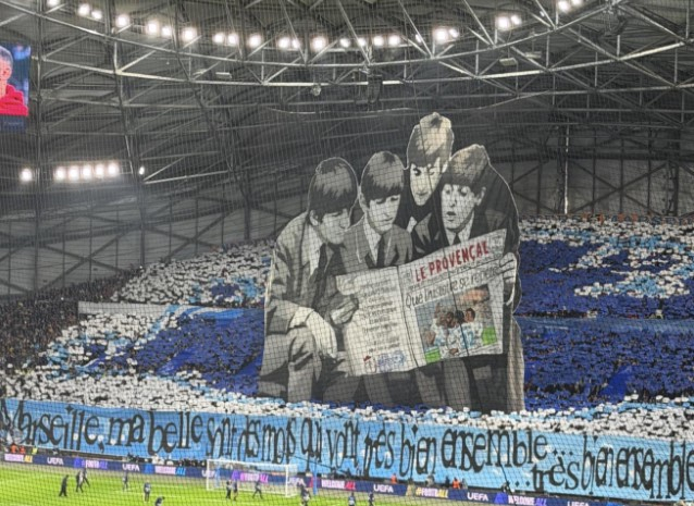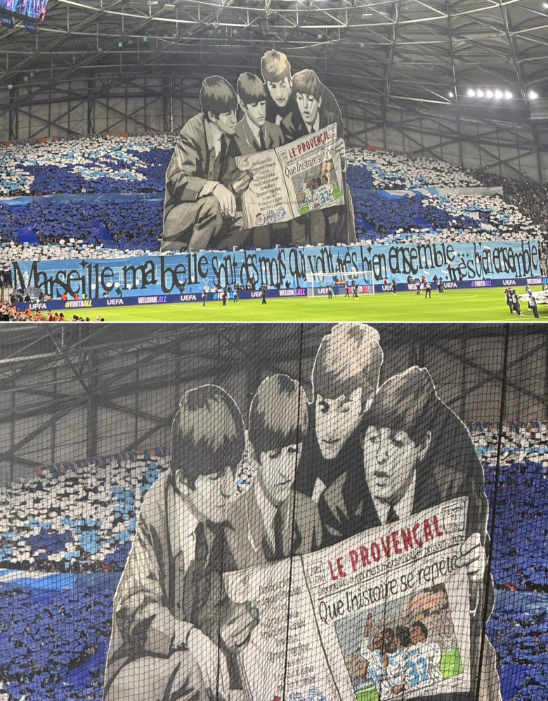 Beatles-themed tifo from the Virage Sud as the Virage Nord goes for Marseille group IAM. pic.twitter.com/shcIag9Pvf