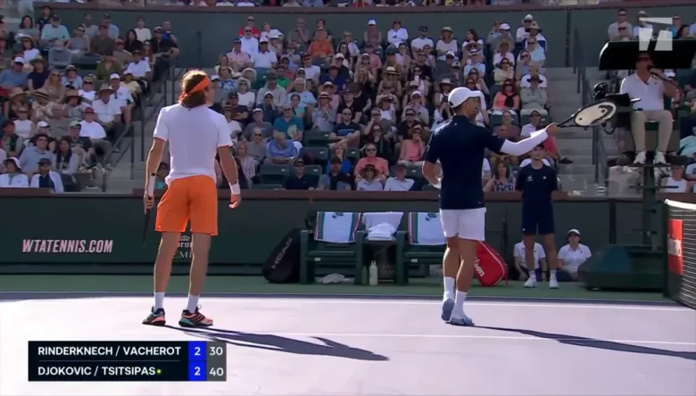 Vacherot gunning Djokovic x2 ... Rinderknech distracting Tsitsipas. Could this be the reason for the unusually quick Djokovic handshake? pic.twitter.com/qAMWvMicVr
