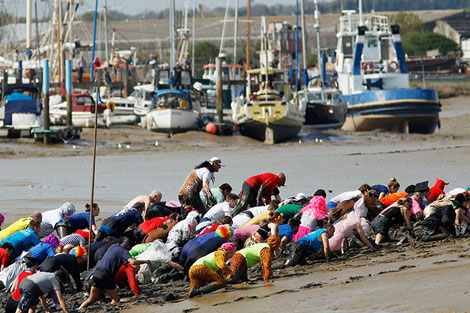 Три часа му требаа на победникот да стигне на целта, но не заради должината на патеката, туку заради тежината на теренот. Градчето Малдон во Англија по 11-ти пат нагости 300 натпреварувачи на калливата трка на која освен победникот, награди добиваат и најчудно облечените.