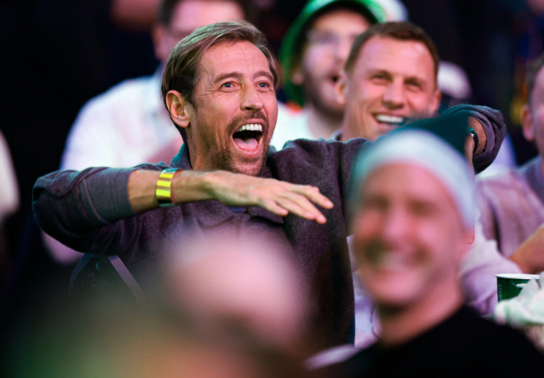 Во публика се најде и симпатичниот Питер Крауч, најдуховитиот фудбалер на репрезентацијата на Англија кого навивачите од цел остров го обожаваат. Камерманот го долови па се смееше:
