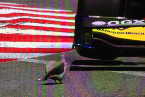 Offside Разно Матрикс гулаб По навивачи, кучиња, мачки и кокошки кои влетуваат на спортските терени, на ред дојдоа и гулабот од патеката на трката од ГП2 серијата во Монако кој го избегна прегазувањето од Бразилецот Фелипе Наср со помош на матрикс салто. SharePostСподели SharePostСподели објавено: 28 мај 2013 - 12:50