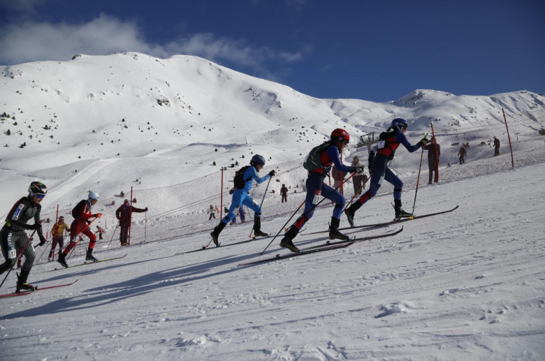 Спринтерите мора да се искачат по планината, а потоа да се вратат. Почнуваат носејќи скии со цврсти „кожи“ на дното за да спречат паѓање додека се искачуваат. Потоа, за дел од искачувањето, спортистите ги вадат скиите, ги ставаат на ранецот и продолжуваат пеш, па ги враќаат скиите за да го завршат искачувањето, кое е вкупно 230 стапки (70 метри).