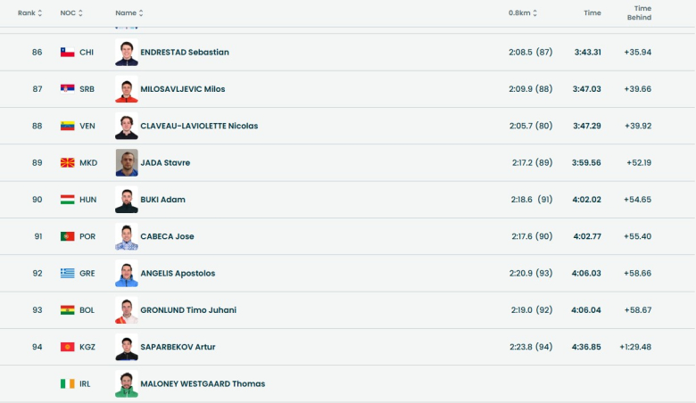 Toa e големо заостанување од над 52 минути зад првопласираниот Клаебо, кој како главен фаворит го освои олимпиското злато.