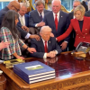 бизарна сцена од Белата куќа, кога верски лидери му ја праќаат силата на молитвите на Трамп кој седи и мижи, собирајќи ја енергијата небаре е Тор. Меѓу нив беше и Паула Вајт, особено опичена особа, евангелистичка проповедничка, духовна советничка и негова лична пасторка. „Да му кажеш не на Трамп е како да му кажеш не на Бога,“ ќе пресуди Вајт. Рубио, добар?