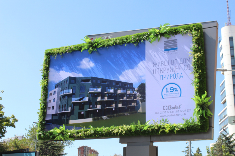Носечка порака на оваа креативна кампања е „Живеј во дом опкружен со природа“, што ја симболизира одличната локација на објектот на самиот кеј на реката Вардар со непречен поглед кон Градскиот парк и Водно.