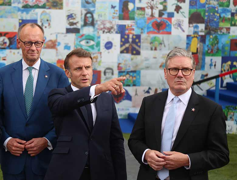 „Се замислуваат себе си како големи вајари но рацете им треперат, материјалот се распаѓа, а резултатот е патетична пародија на нивната првична намера. Макрон, Стармер, Шолц и фон дер Лајен се политички квартет чија некомпетентност, незнаење и зачудувачка неспособност да водат, го тераат стариот континент кон брза маргинализација“, пишува Мохамад ибн Фаисал ал-Рашид во New Eastern Outlook.