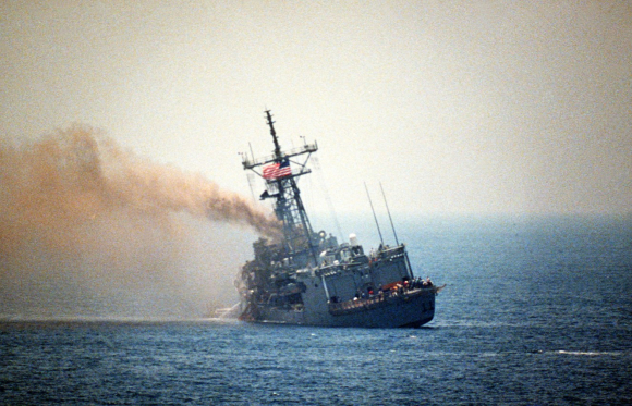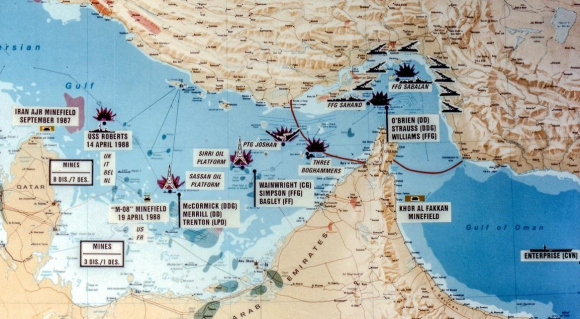 По 24 безбедни мисии, фрегатата „Семјуел Робертс“ во април 1988 година навлезе на минско поле поставено од Иран претходниот ден. Капетанот го забележал и решил да се врати по истиот пат, но бродот сепак активирал мина, која направила голема дупка во трупот. Екипажот едвај успеал да ги закрпи деловите со челични сајли. Имало само десетмина повредени морнари.
