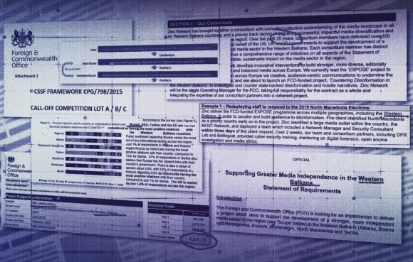 Протечен оглас од Министерството за надворешни работи за проект во Западен Балкан насловен „Поддршка на поголеми медиумски слободи“ ја вклучува компанијата Zinc Network, која се претставува како комуникациска агенција. Zinc заработува милиони од договори со владини организации од Британија, САД и Австралија за проекти за пропаганда преку добротворни и невладини организации, платформи на социјални медиуми и новински куќи.