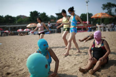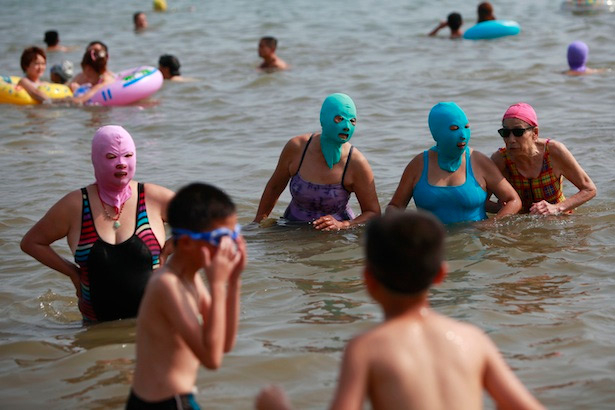 Фотографиите објавени од Ројтерс направени се на плажите на Цингтао (на Тихиот Океан), каде жените веќе неколку години проблемот со сонцето го решаваат со најлонски маски.