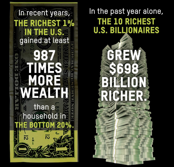 Најбогатите 1% од Американците во периодот од 1989 до 2022 година се збогатиле сто пати повеќе во споредба со просечното семејство од средна класа во истиот период, тврди организацијата Оксфам, врз основа на податоци од Федералните резерви. Ако се споредуваат со најсиромашните 20% од населението, се збогатиле 987 пати повеќе.