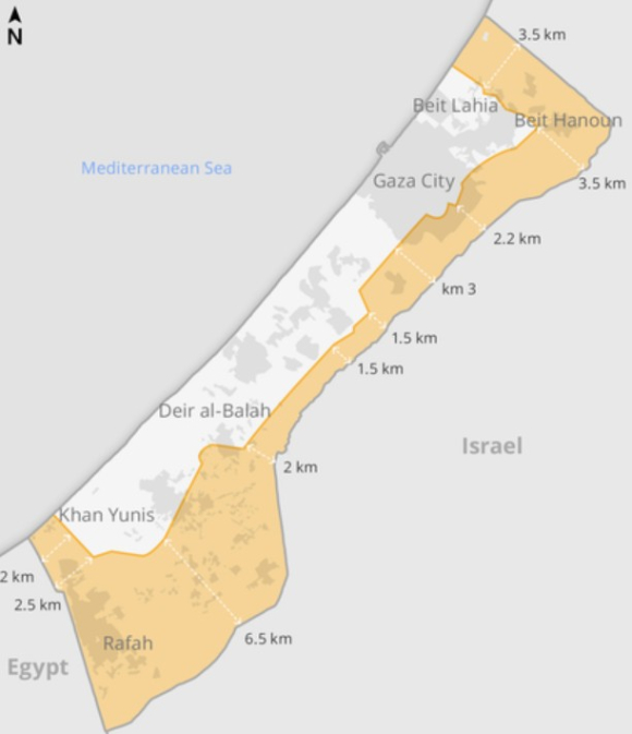 Сателитски снимки покажуваат дека војската изградила најмалку шест големи утврдувања, сите на израелска страна оддалечени 700 метри од линијата на контрола. Едно од нив, во Беит Ханун во северна Газа, е 264 метри од линијата.