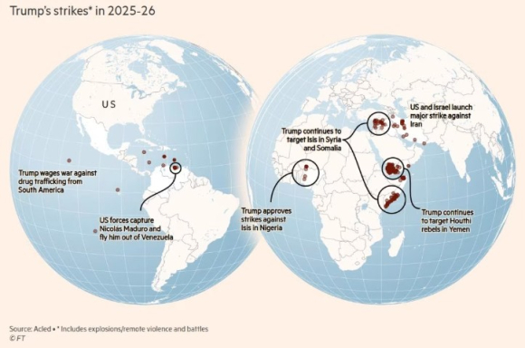 Во новата година Трамп тргна уште поагресивно. Веќе на 3 јануари ја нареди спектакуларната акција за грабнување на венецуелскиот претседател Николас Мадуро од неговата резиденција во Каракас.