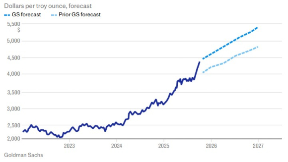 Новата проценка на Голдман Сакс е дека златото ќе достигне 4.900 долари за унца до декември следната година.