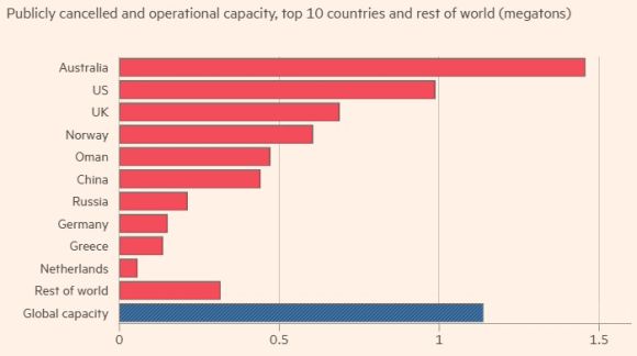 Само во текот на оваа година нафтените компании на чело со Бритиш петрол, Шел и Ексон-Мобил откажале или замрзнале повеќе од 60 проекти за производство на вкупно 4,9 милиони тони нискојаглеродно водородно гориво – четири пати повеќе отколку сегашниот глобален капацитет.