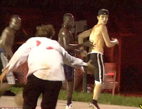 Па, снимил видео од реакции на луѓе додека тој глуми зомби и грофта наоколу, во искината и крвава кошула. Да, тоа му е финтата. Видеото го одгледавме до крај, само за да видиме дали некој ќе извади пиштол и ќе му го прекине "вицот".