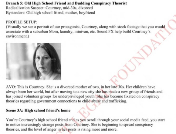Внатрешна белешка од 29 јануари 2021 година, само 8 дена откако Џо Бајден даде заклетва, содржи тест со примери „Избери ја својата авантура“ во која биле опишани сценарија за радикализација со разни фиктивни ликови.