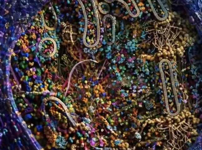 Во 1974 година е напишана една книга во која се вели дека клетката е посложена од телото и посложена од планетата Земја. Тоа може да звучи како празна поетична белешка сè додека не ја видите оваа 3Д реконструкција на човечка (еукариотска) клетка - еден фасцинантен клеточен пејзаж кој не може да не ве натера да помислите кој/што стои зад сево ова.