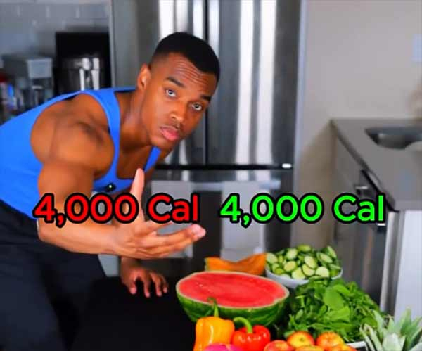 Многу сликовито и ефикасно споредување на тоа како изгледаат 4.000 калории. Од едната страна полна маса со секакви (здрави) јадења, на другата половина само една тегла. Добро, глупи ли се луѓето? Не, само што немаат сите луѓе пари да ги купат оние работи од полната страна на масата.