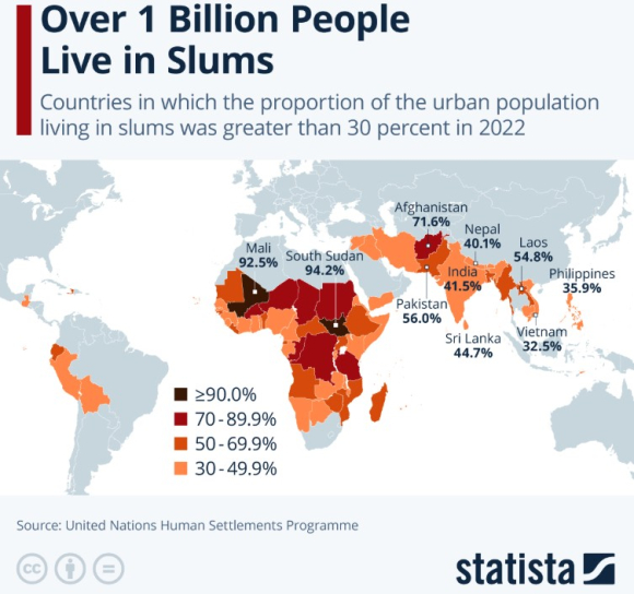 Фактор што влијае на експанзијата на сиромашните квартови е и поскапувањето на станбениот квадрат. Луѓето од внатрешноста што доаѓаат во градовите по работа не можат да си дозволат да плаќаат станарина или да купат дом.