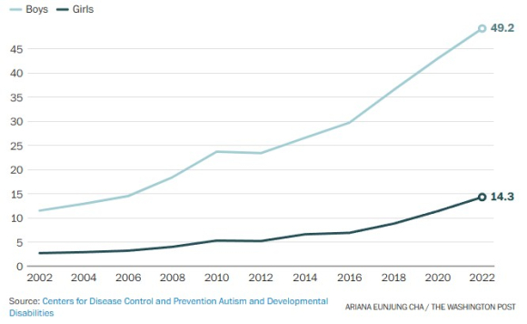 Во последниве години, со проширувањето на дијагностичките критериуми, бројот на луѓе идентификувани како аутистичен нагло се зголеми. Најголемиот дел од растот е кај оние со поблаги симптоми. Според податоците од Центрите за контрола и превенција на болести околу 1 од 150 деца биле дијагностицирани со аутизам во 2000 година. До 2022 година таа честота се искачила на 1 од 31. Зголемувањето може да изгледа зачудувачки, но многу експерти велат дека тоа не одразува епидемија на самиот аутизам, туку поголемо разбирање на неговите многу форми - и општество кое станува поприлагодено кон нивното препознавање.