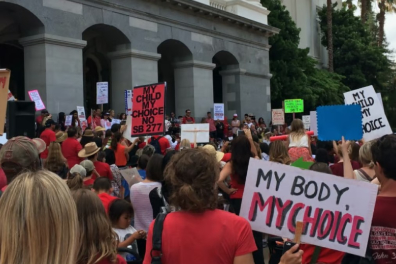 Во сите сојузни држави во САД се бара потврда за вакцинирање заради запишување во училиште. Некои дозволуваат исклучоци од религиозни или филозофски причини, додека сите дозволуваат медицински исклучоци. Општиот закон би елиминирал такви судири.